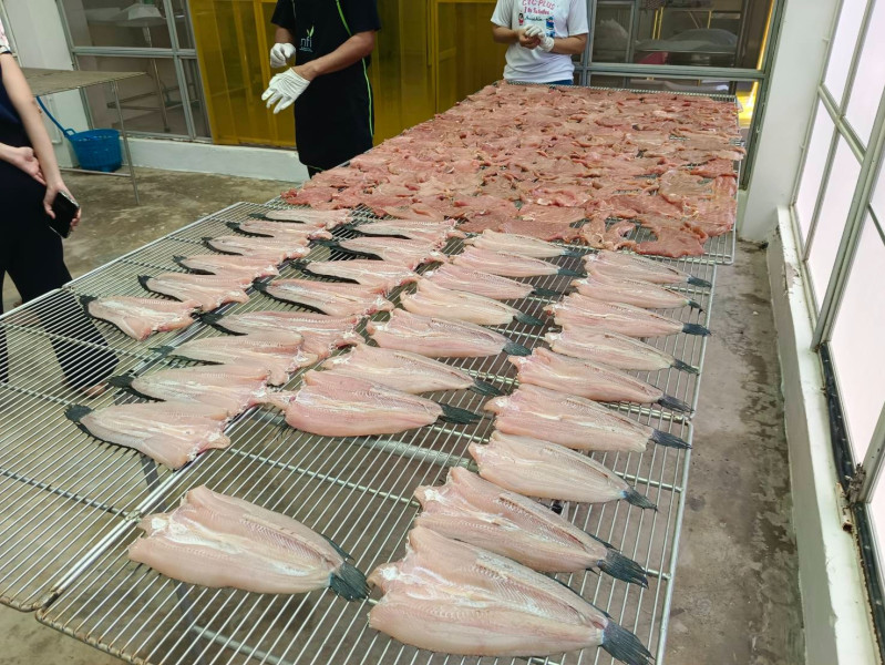 วันที่ 23 พฤษภาคม 2568 นางสาวชวัลลักษณ์ งามสมมิตร์ นักวิชาการสหกรณ์ชำนาญการและคณะ จากกลุ่มพัฒนาสหกรณ์ประมงและปศุสัตว์ พร้อมด้วยเจ้าหน้าที่สำนักงานสหกรณ์จังหวัดสิงห์บุรี ลงพื้นที่ติดตามการดำเนินงานโครงการพัฒนาผลิตภัณฑ์ชุมชนของสถาบันเกษตรกรและสมาชิก ณ กลุ่มถนอมอาหารจากปลาบ้านตราชู ภายใต้สังกัดสหกรณ์เครือข่ายกลุ่มอาชีพสิงห์บุรี จำกัด สินค้าปลาช่อนแดดเดียว พร้อมชี้แจงรายละเอียดการจัดกิจกรรมต่อยอด (Bottom up) โครงการฯ สำหรับจัดอบรมการพัฒนาผลิตภัณฑ์