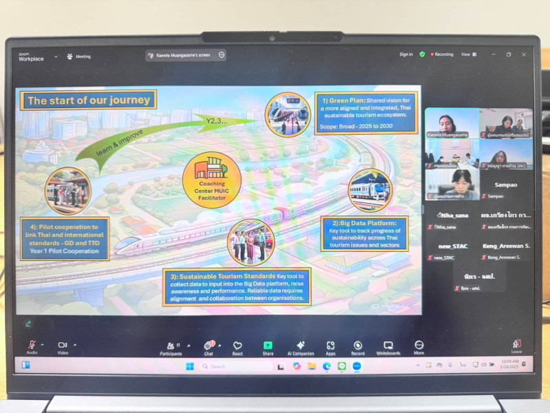 วันที่ 28 พฤษภาคม 2568 นางสาวอาริสา ตัณฑจินนะ ผู้อำนวยการกลุ่มวิจัยและพัฒนาสหกรณภาคการเกษตร พร้อมด้วยนางสาวญาโณบล บุญชู นักวิชาการสหกรณ์ปฏิบัติการ เข้าร่วมสัมภาษณ์เพื่อเป็นข้อมูลสนับสนุนการขับเคลื่อนการท่องเที่ยวอย่างยั่งยืนในประเทศไทย โครงการ Thailand Green Plan 2030 ประจำปีงบประมาณ พ.ศ. 2568 ในประเด็นกลุ่มความยั่งยืนด้านสังคม – เศรษฐกิจ ผ่านระบบ Zoom Meeting